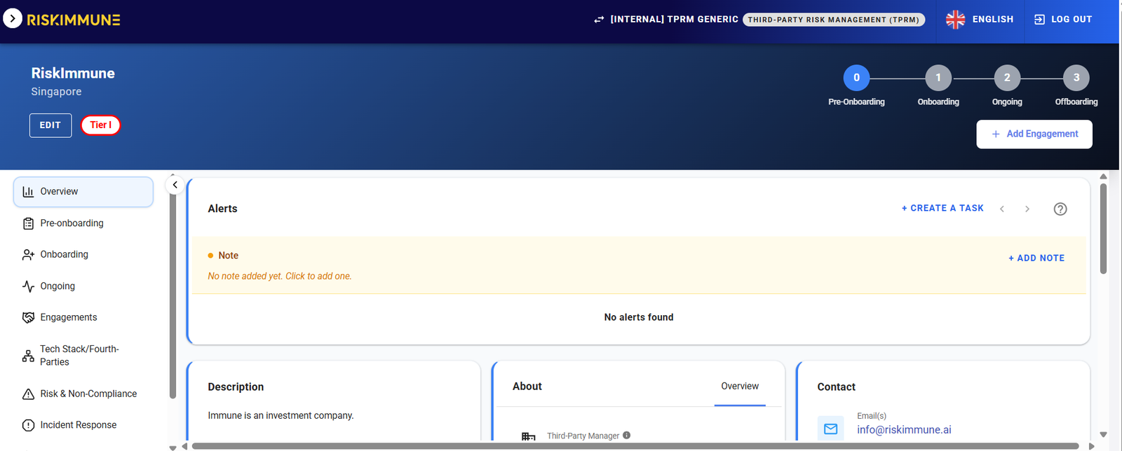 Risk doesn’t stop at the initial evaluation, and neither does RiskImmune. Its full lifecycle management ensures you stay in control at every stage—from onboarding third-party vendors to ongoing monitoring and eventual offboarding. This end-to-end solution ensures operational efficiency and strengthens your governance framework.