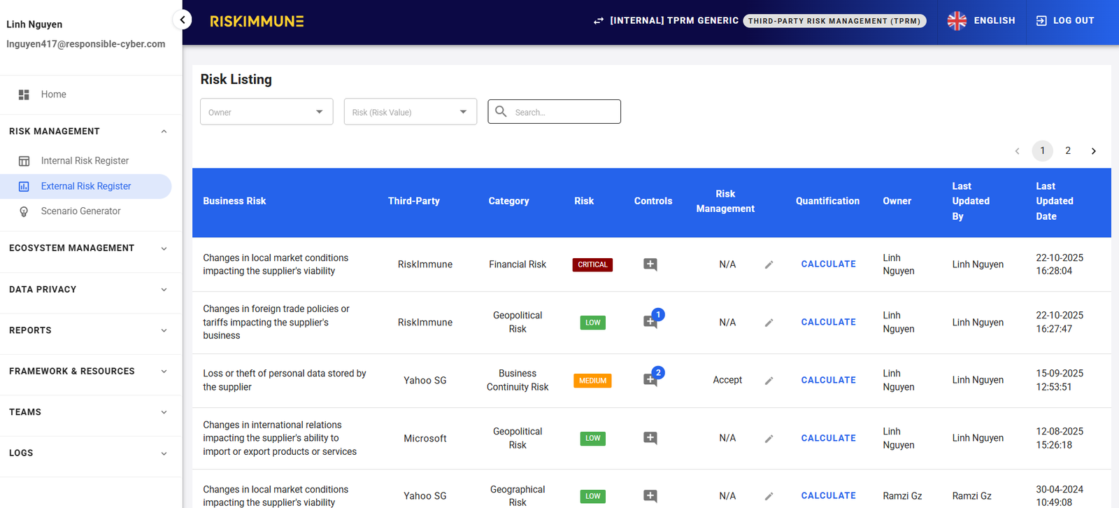 Elevate your risk strategy today with a platform trusted by global leaders to foster resilience and build a sustainable digital ecosystem. Gain full control over your organization’s risk management with RiskImmune.